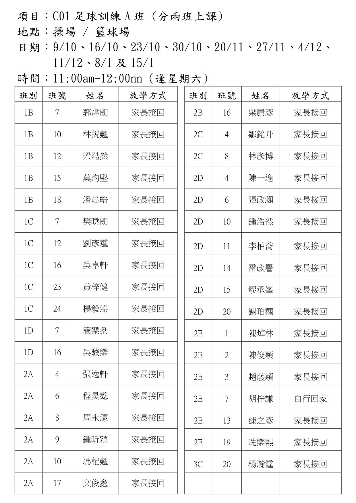 C01足球訓練A班(操場或籃球場)