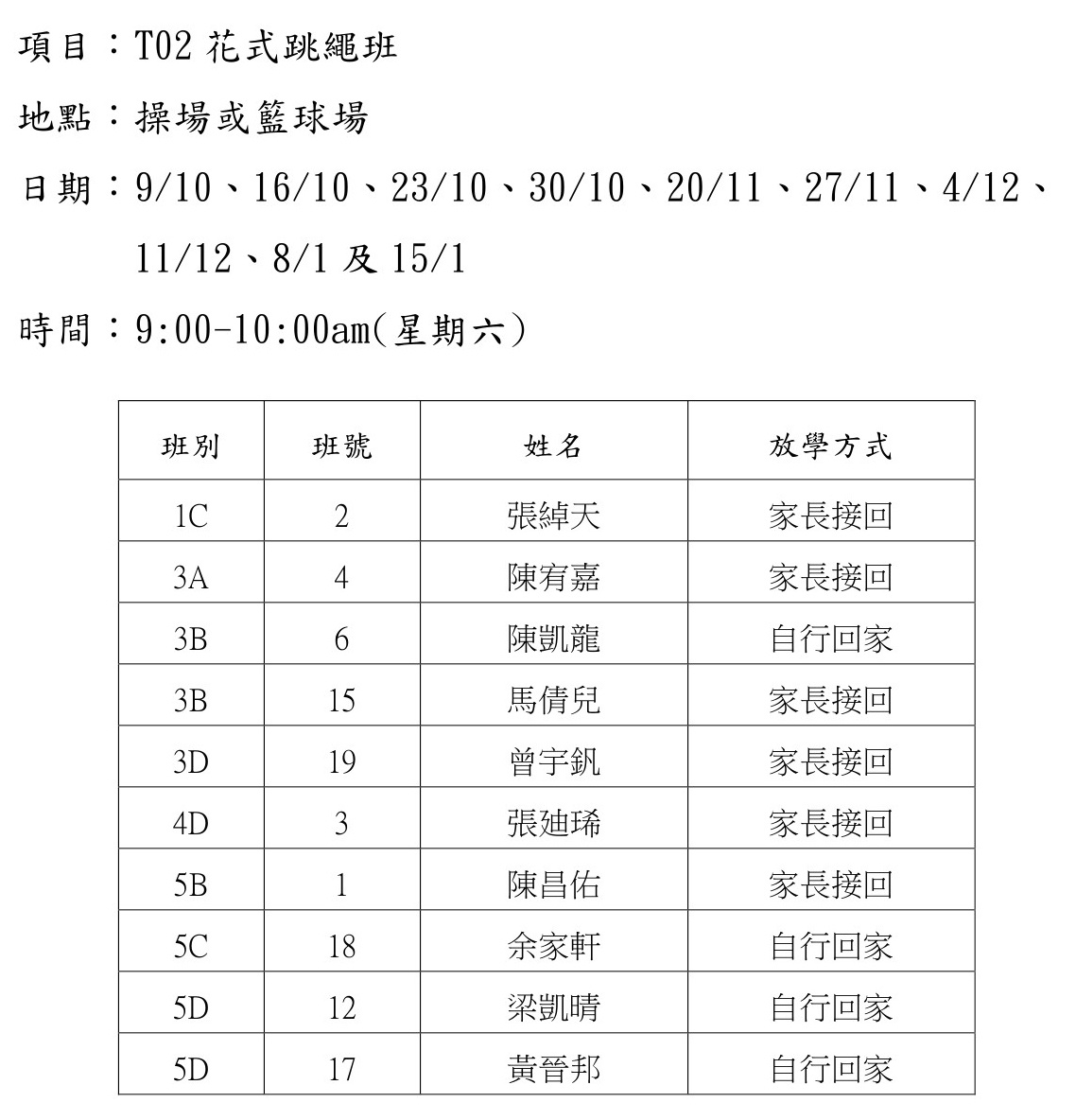 T02花式跳繩班(操場或籃球場)