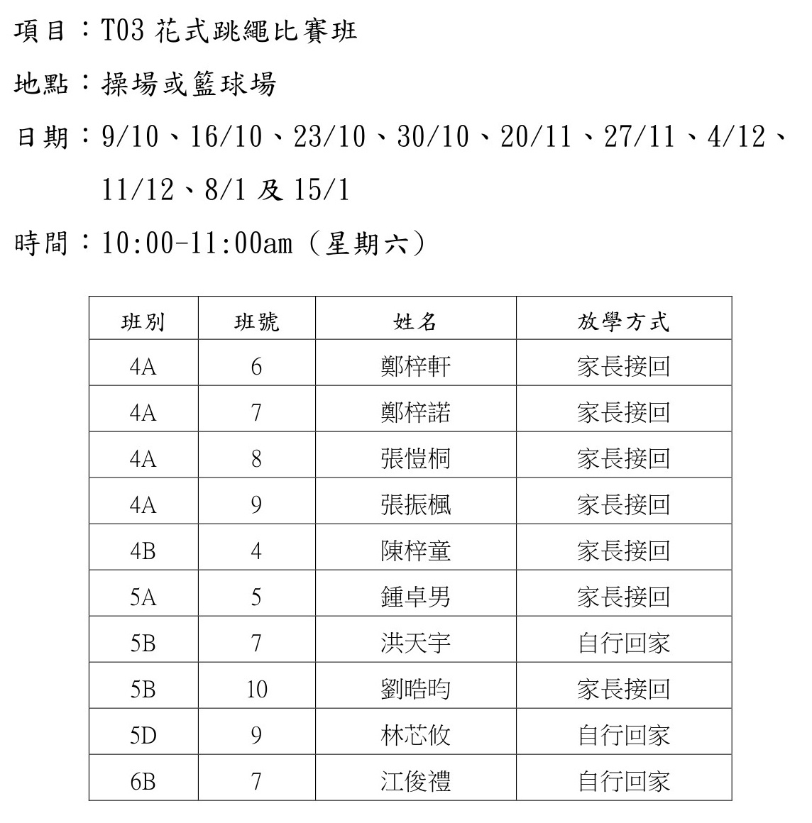 T03花式跳繩比賽班(操場或籃球場)