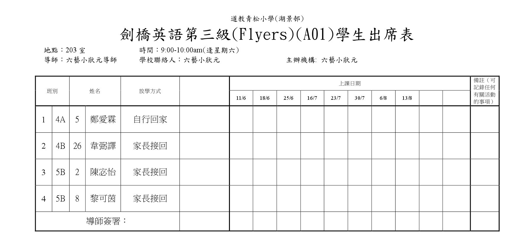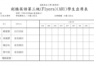 A01劍橋英語第三級(Flyers)(203)學生名單