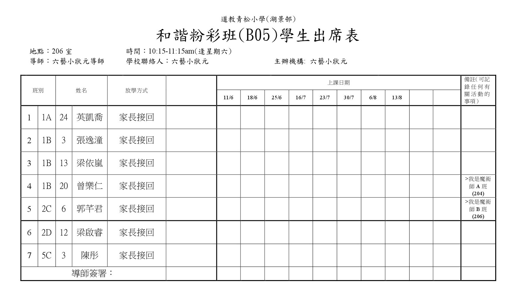 B05和諧粉彩班(206)學生名單