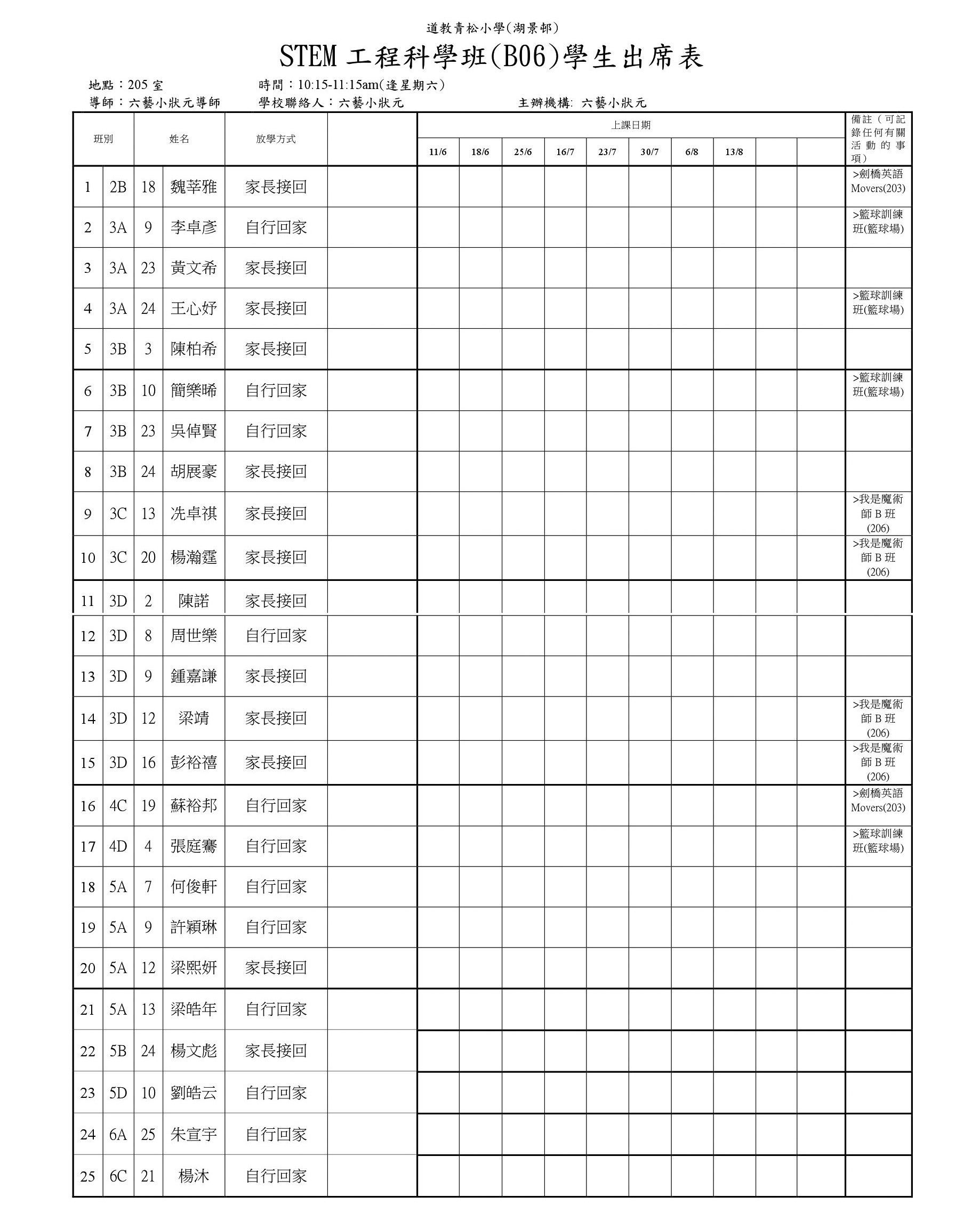 B06STEM工程科學(205)學生名單