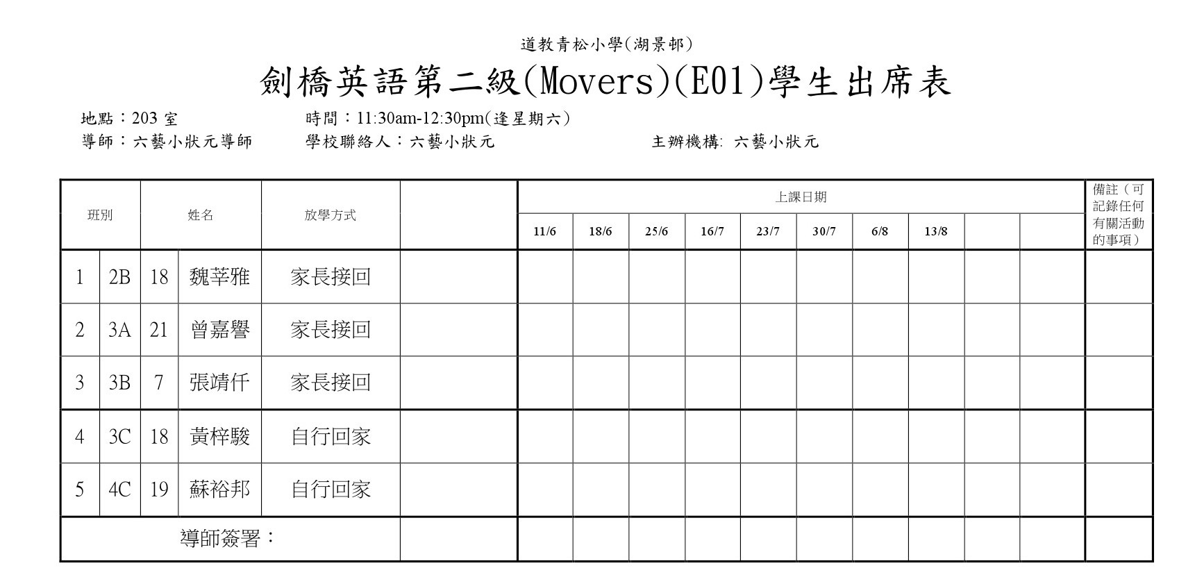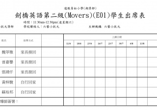 E01劍橋英語第二級(Movers)(203)學生名單