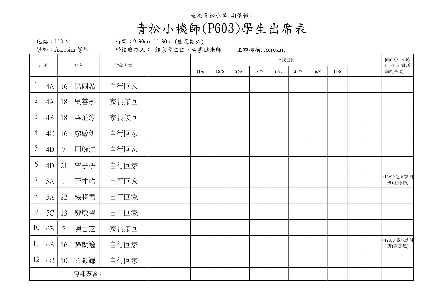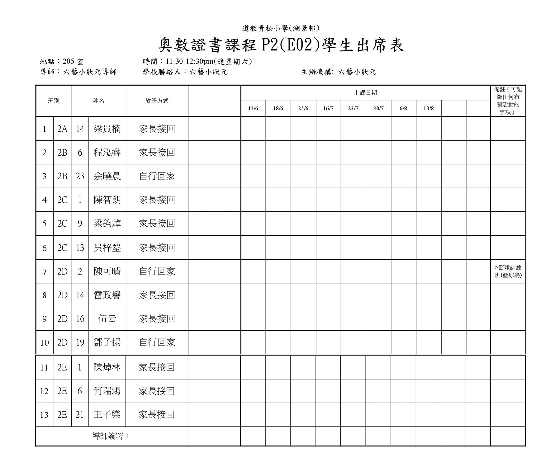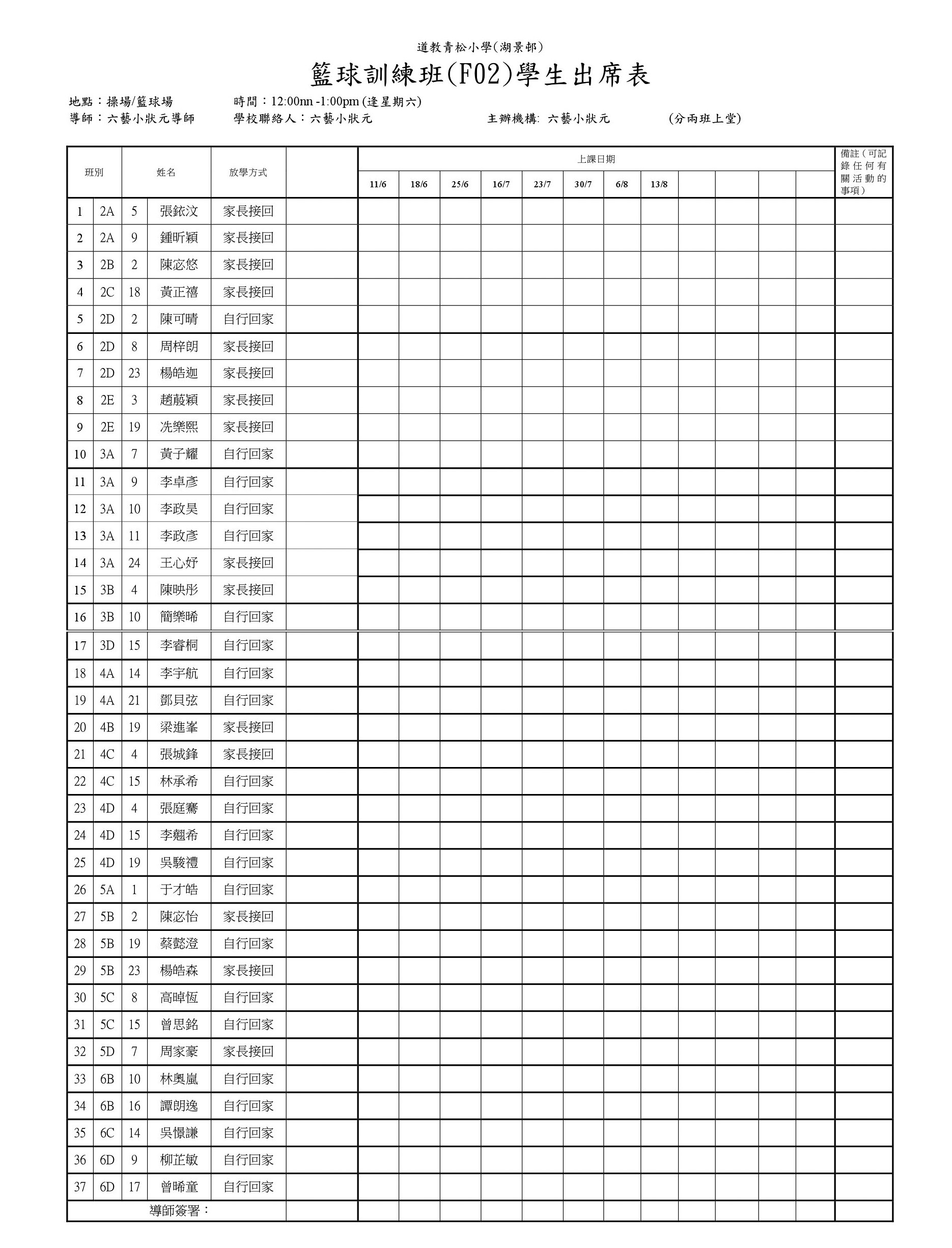 F02籃球訓練班(操場或籃球場)學生名單