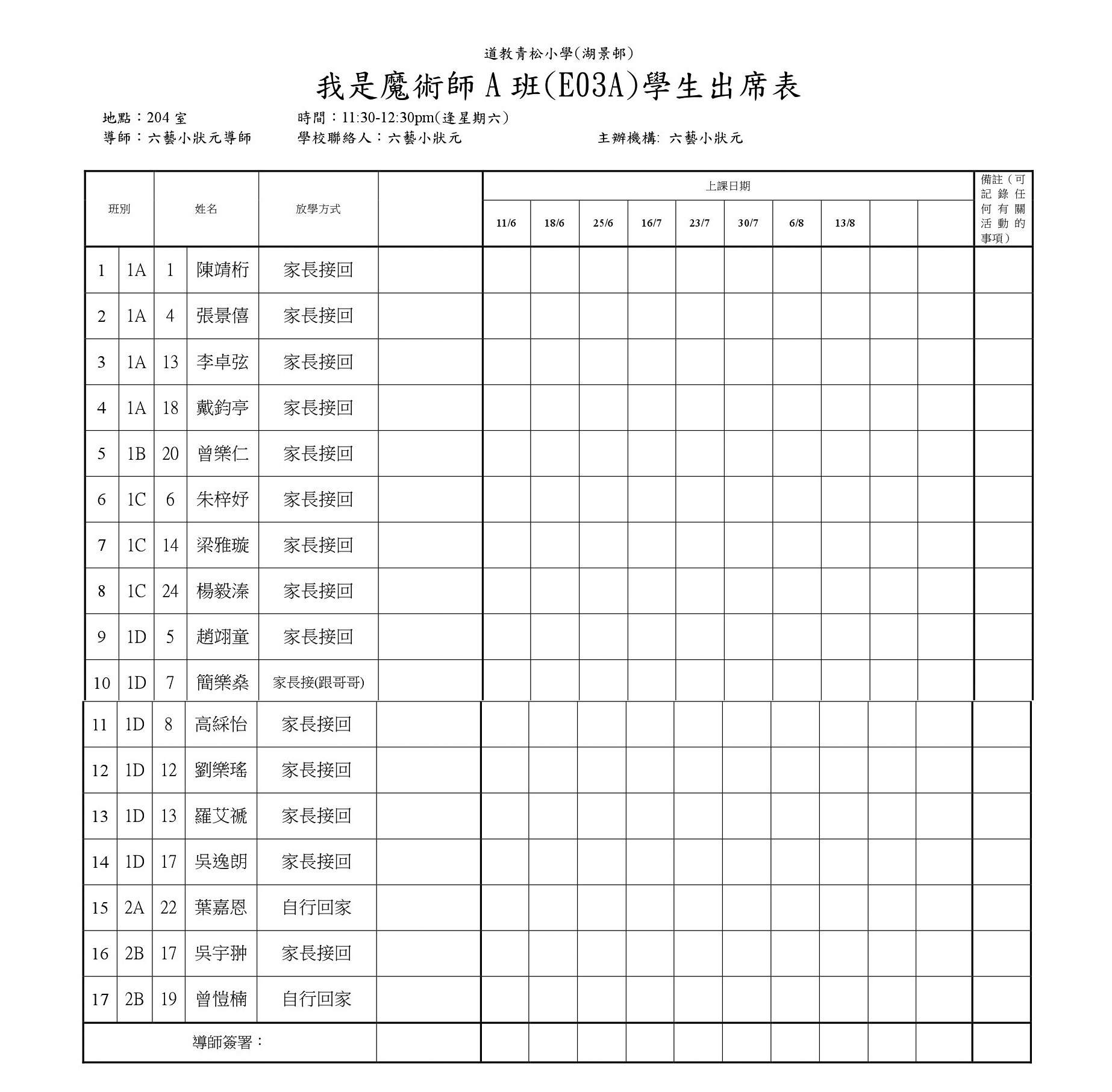 E03A我是魔術師A班(204)學生名單