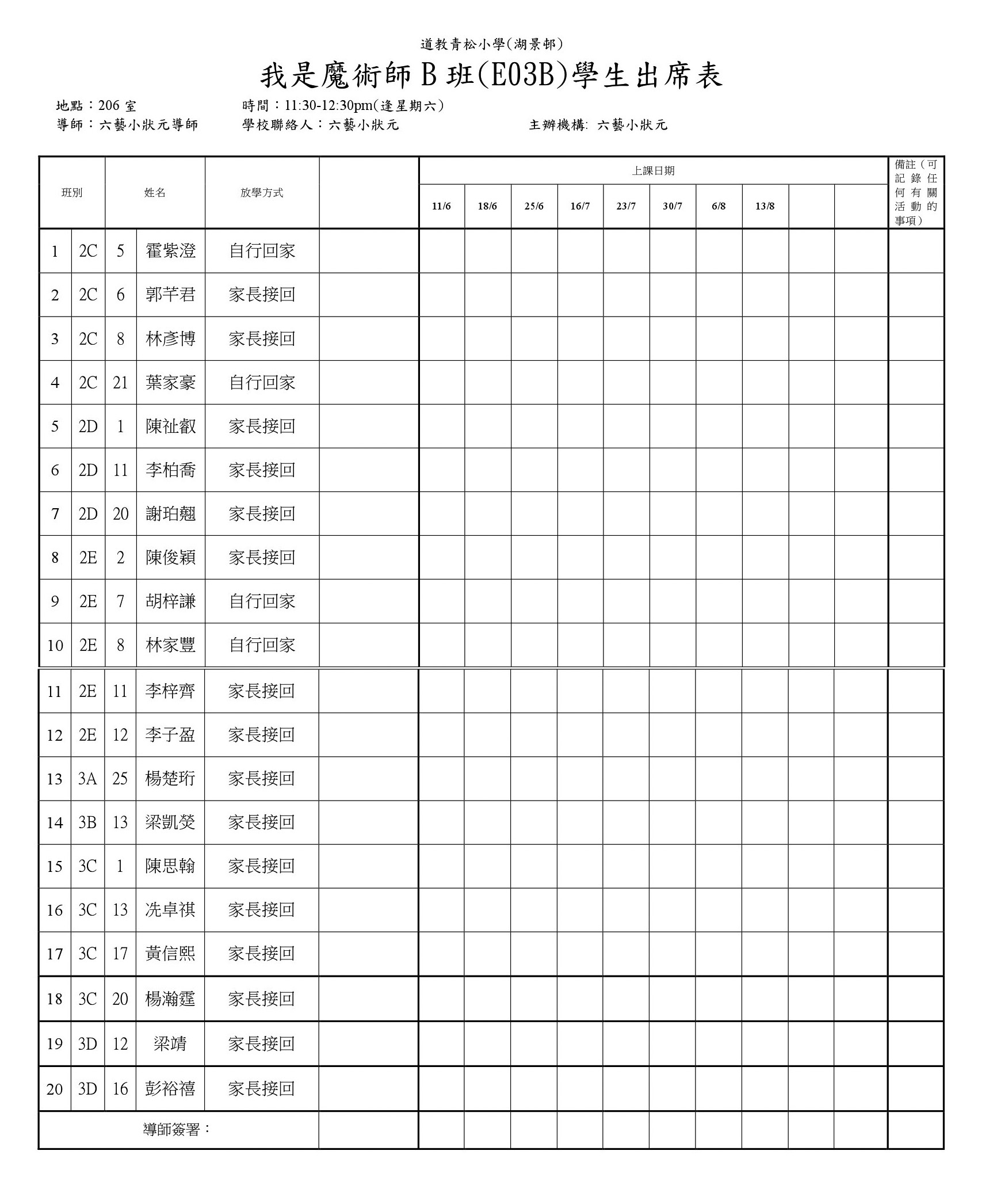 E03B我是魔術師B班(206)學生名單