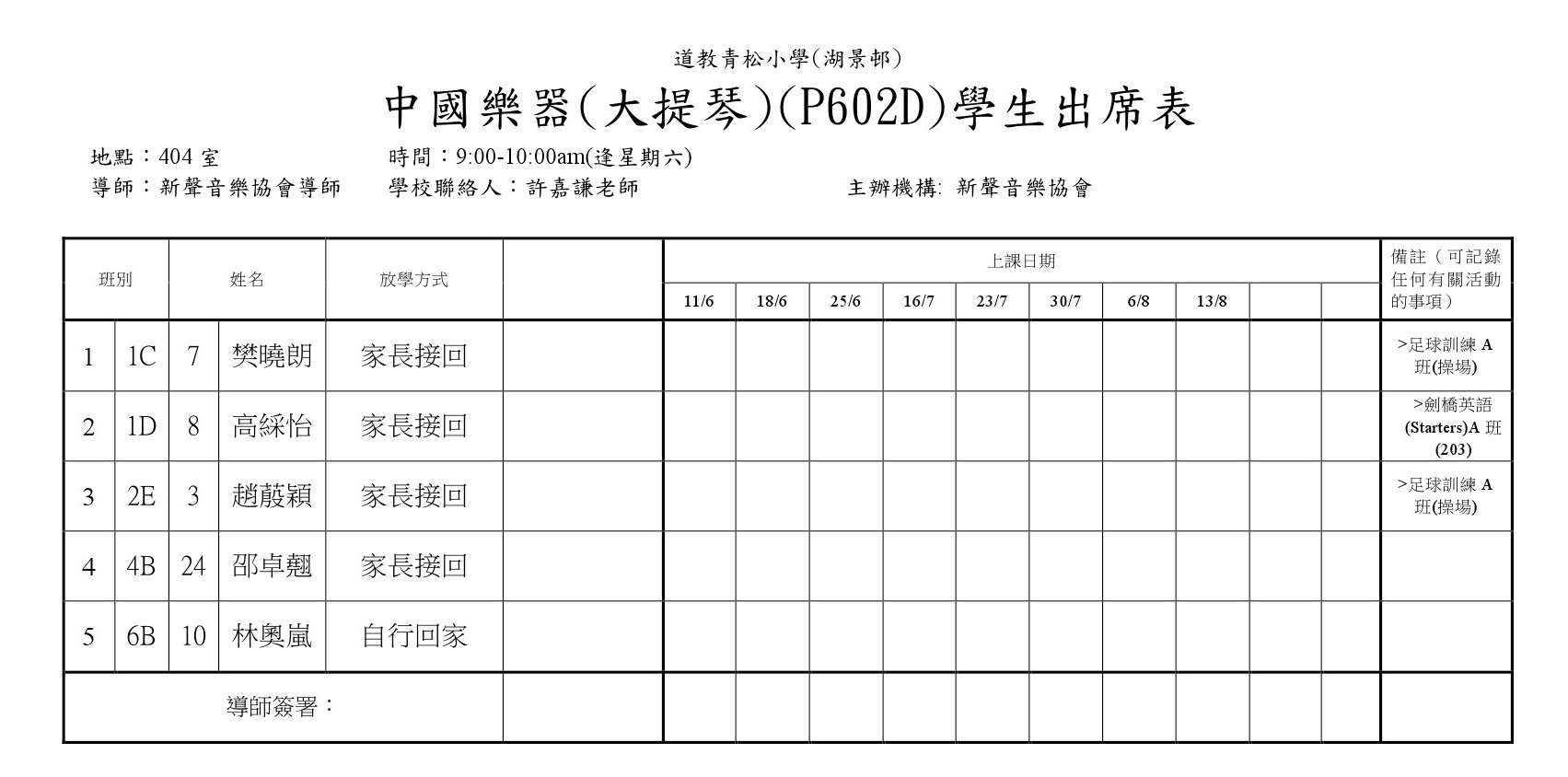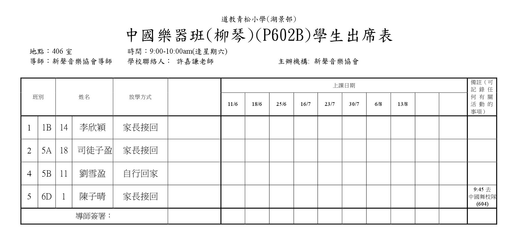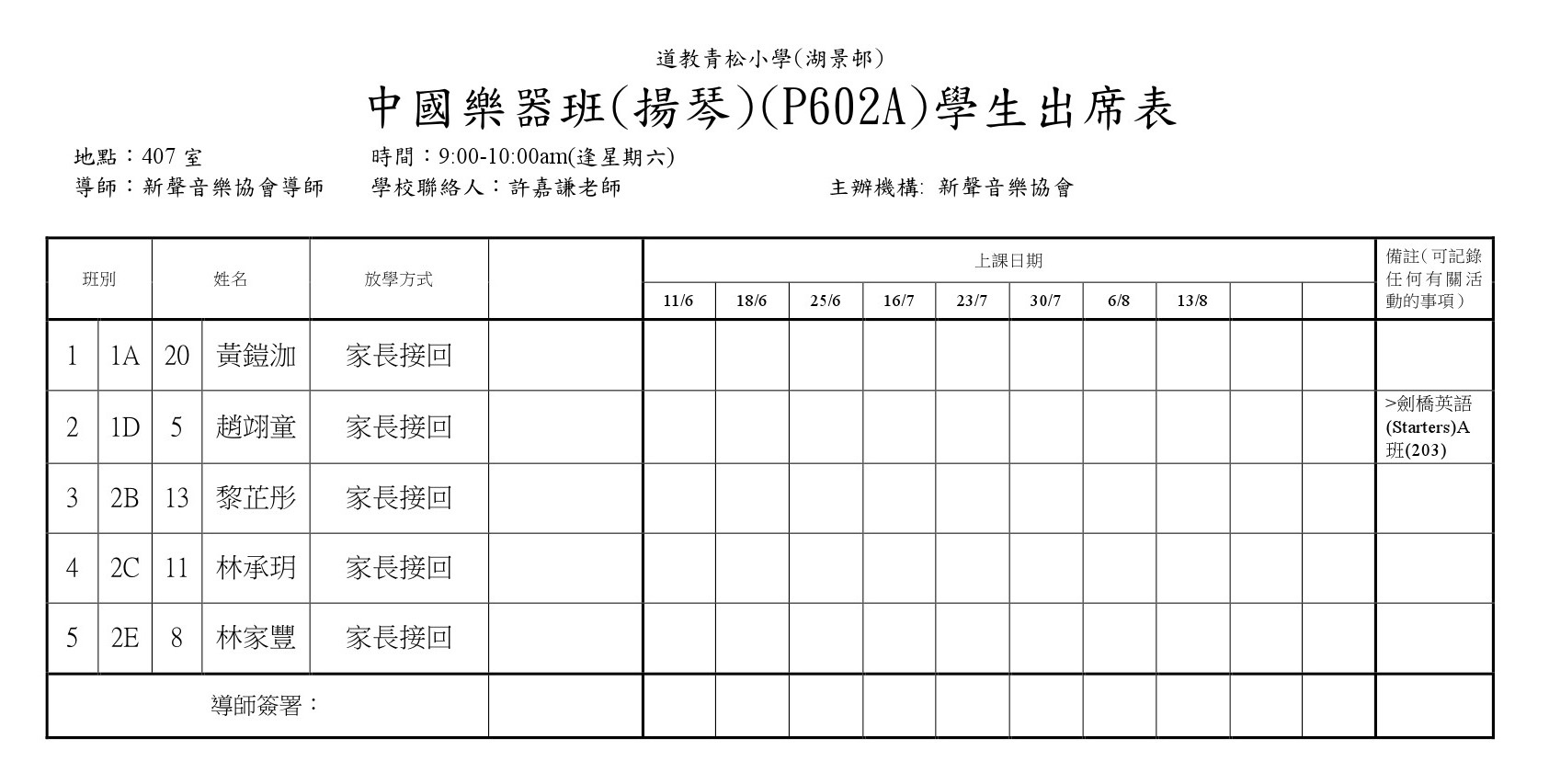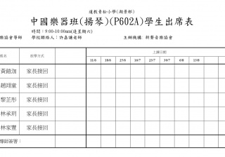P602A中國樂器班(揚琴)(407)學生名單