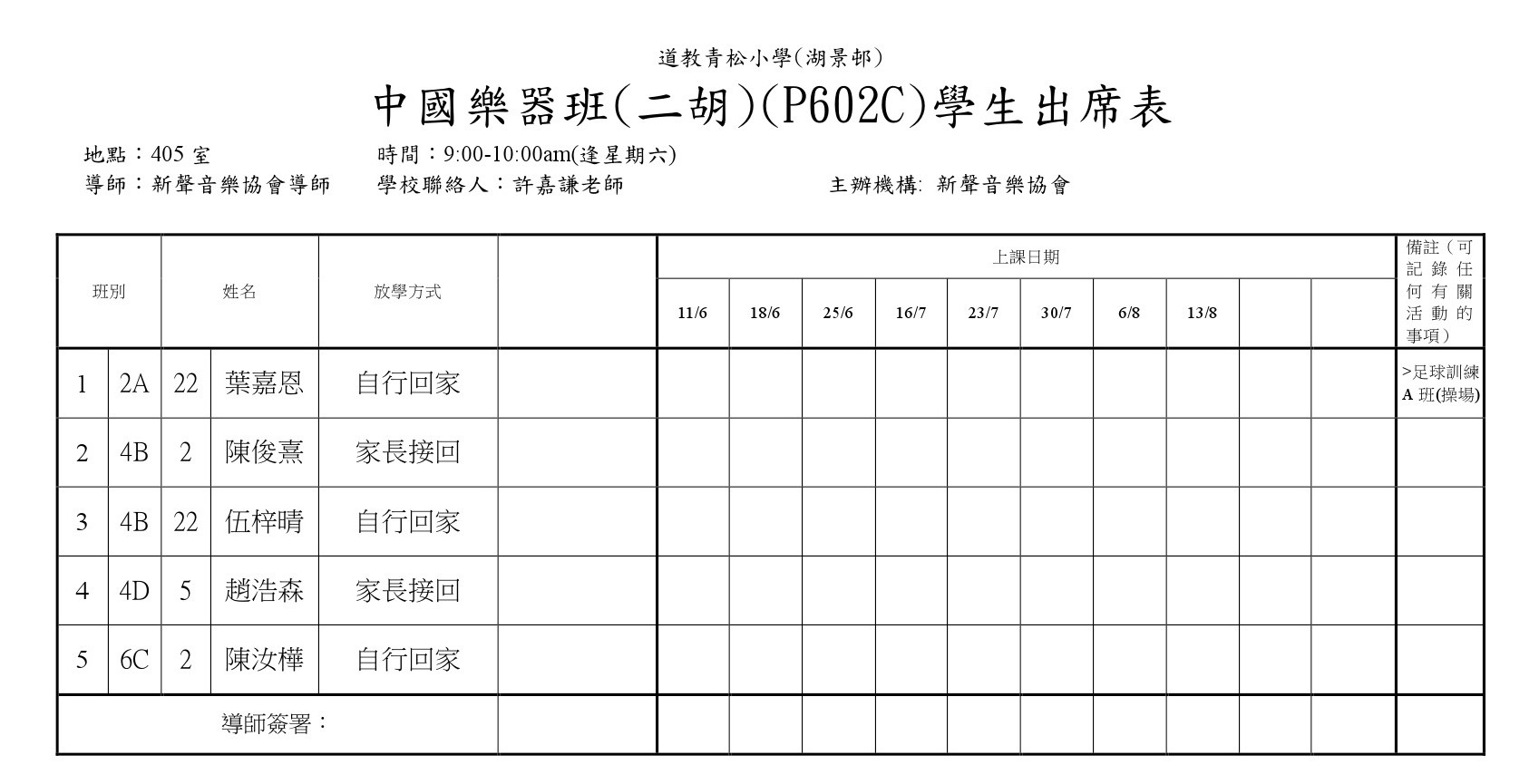 P602C中國樂器班(二胡)(405)學生名單