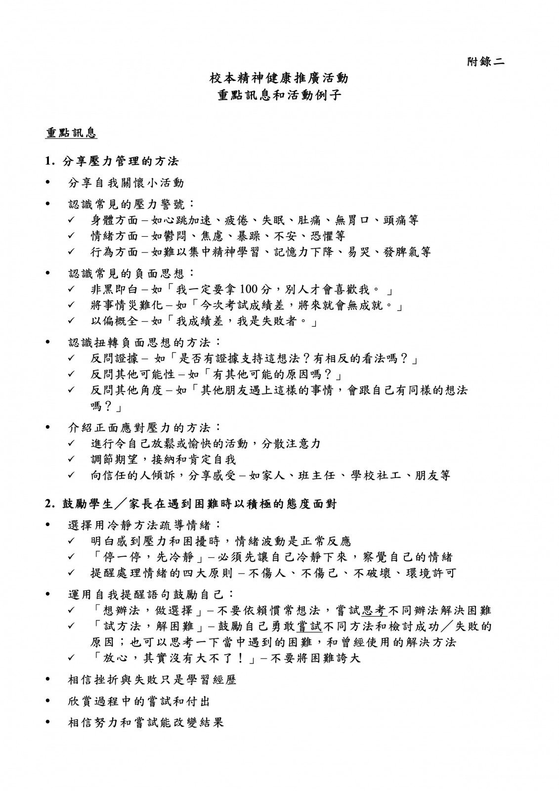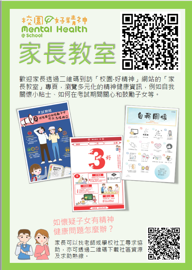 當中包括專為學生、教師及家長而設的精神健康資訊,內容涵蓋心理健
